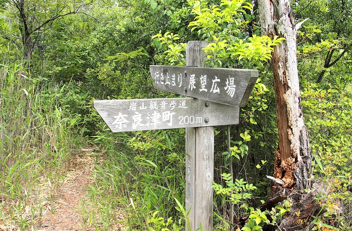 案内標識「← 岩山観音歩道 奈良津町200m」まで戻り左折です。巌山観音堂への道は、右折し、来た道を戻らなくてはならないのですけど、つぃウッカリしまして、何にも考えず左折してしまいましたGONsanです。