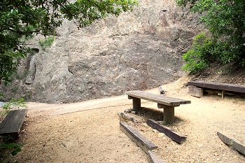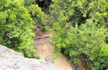 ベンチの所から岸壁を見上げますと、確かに垂直の岸壁ではありますけど、そんなに怖そうにも感じません。が、岩場の上から真下を見下ろしますと、あまりの高さに足も震えます。よくこんな岸壁を上ってくるなぁ〜と感心してしまいます。