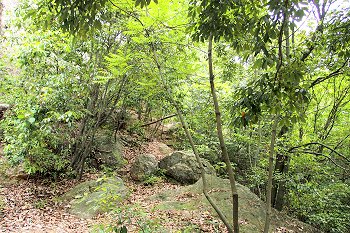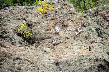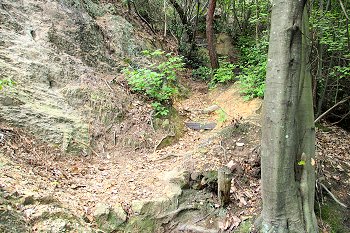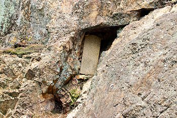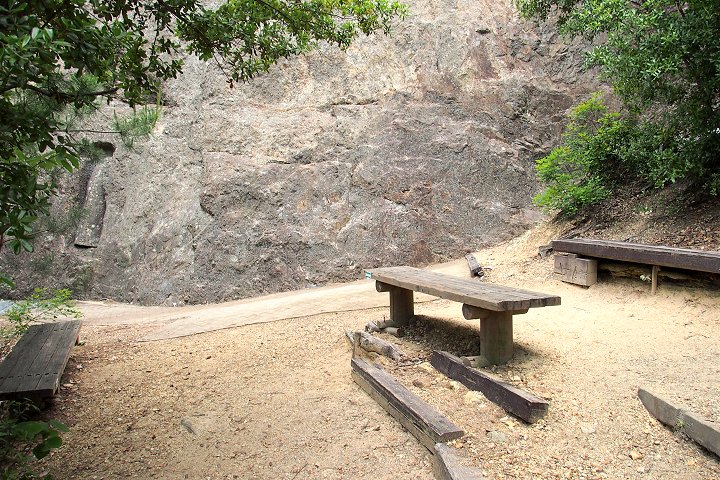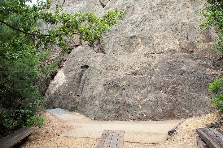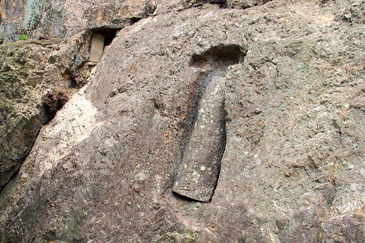 昔、この場所で修行されました方々の聖地なのでしょうけど、こんな聖地に足を掛け、ハーケンを打ち込み、上がって行く…バチが当たらないのだろうか?…と、心配してしまいますが、別に「ロッククライミング禁止」の標示が何処にもありませんのが、これまた不思議(^-^)