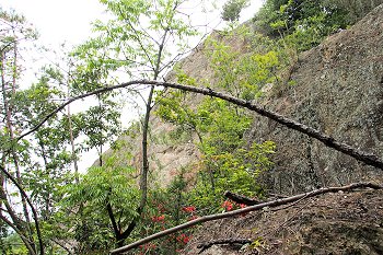 昔の修行僧も、この岸壁を上り修行しておられましたのかも…そんな永い歴史が引き継がれ、今ではロッククライミングとして至っていますのかも…