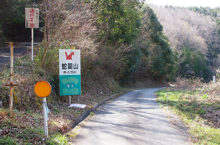 登山道は野呂往還と呼ばれる道を辿る。蛇円山の北、藤尾ダムの南にかって栄えた藤尾銀山から銀を運び出すための道で、一説には鉱山から蛇円山を通り、JR福塩線戸手駅西側辺りへ通じる尾根道だったという。