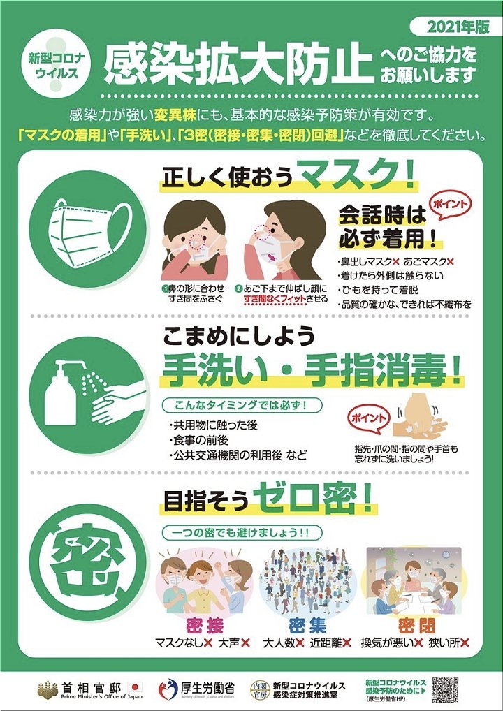 変異株にも基本的な感染予防策が有効です。(画像は新型コロナウイルス感染症対策推進室(内閣官房)ツイッター画像より)