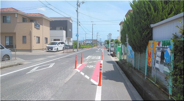 小学校・幼稚園隣接の市道ですから、「白線の箇所は避けて走行しろ」と言う意味なんだろう…と、勝手に解釈しておりました。