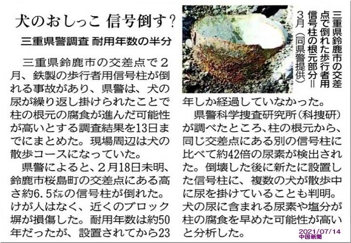 それにしましても、ワンchanのシッコの永年に渡る積み重ねで、6.5mの信号柱を倒すのですから(^-^)