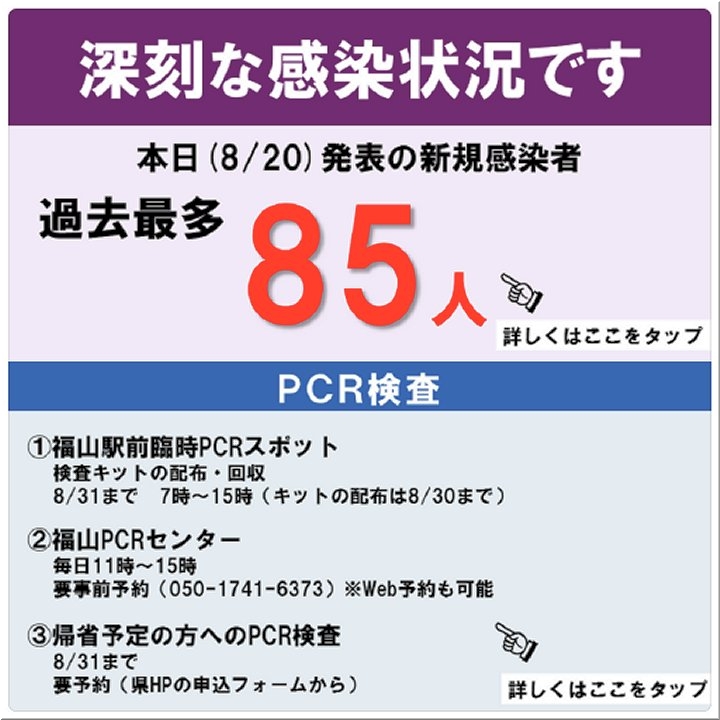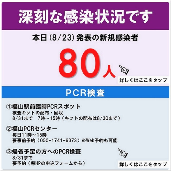 昨日の福山市のコロナ感染者は、「80名」でしたか…