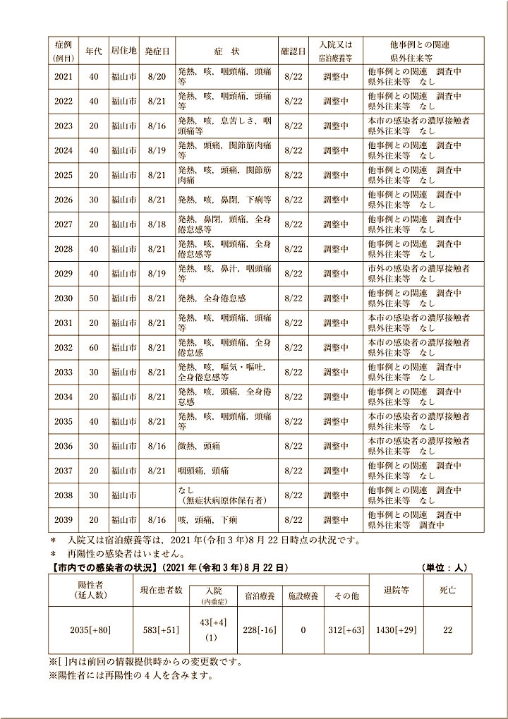8/22(日)、1960〜2039例目となる80人の感染者が確認されました。