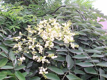 花期は7-8月で、枝先の円錐花序に細かい白色の蝶形花を多数開き、蜂などの重要な蜜源植物となっている。花の咲き方は、ややまばらに咲く。