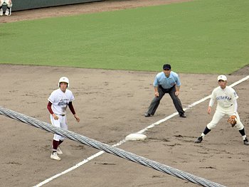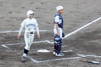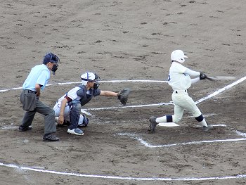 1回は両チームとも無得点で終え、迎えました2回の表、誠之館の攻撃です。ヒットを重ね、幸先いぃですねぇ〜まずは1点、先取です(^.-)☆