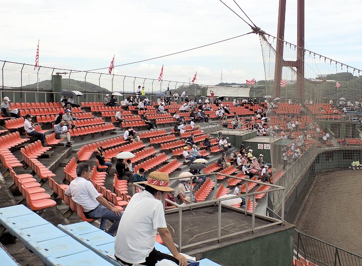 観客は、第一試合ほど多くはありませんけど、一般の観客の皆さんは、やはり地元校を応援しておられます様子。1点先取に、結構、湧いておりました(^-^)//"