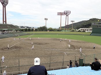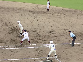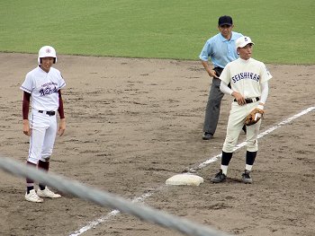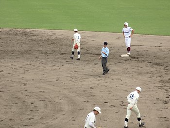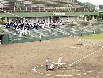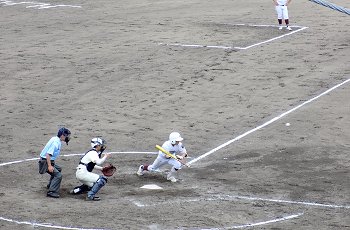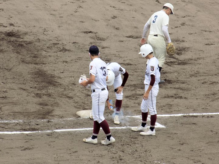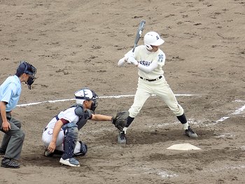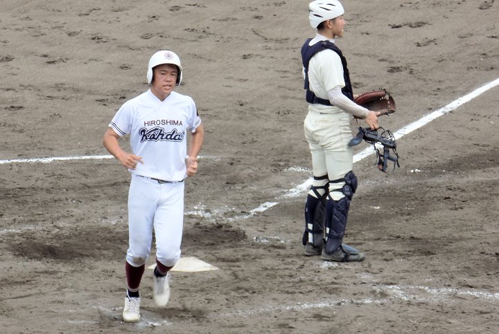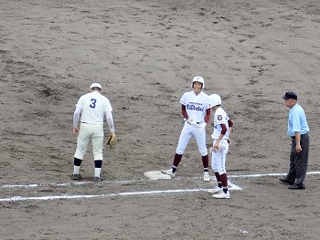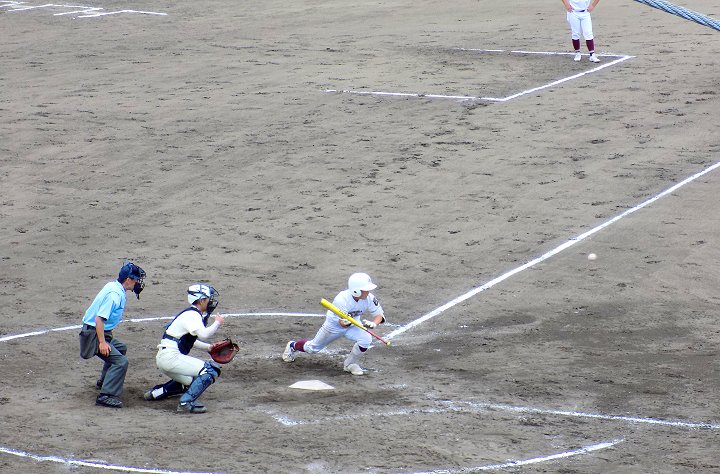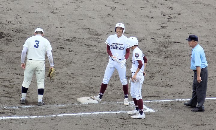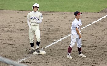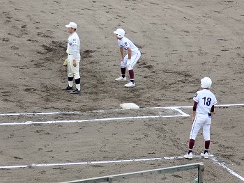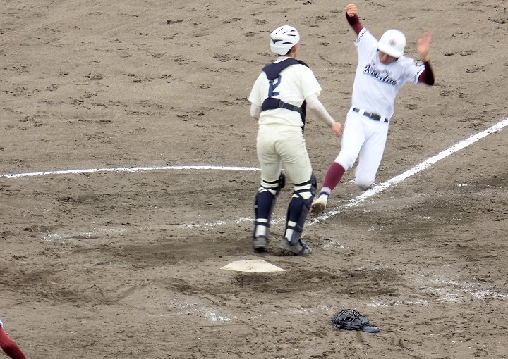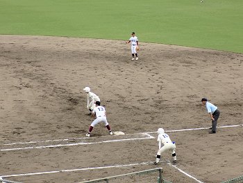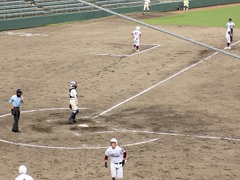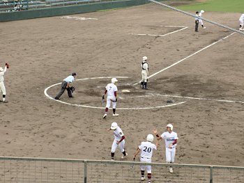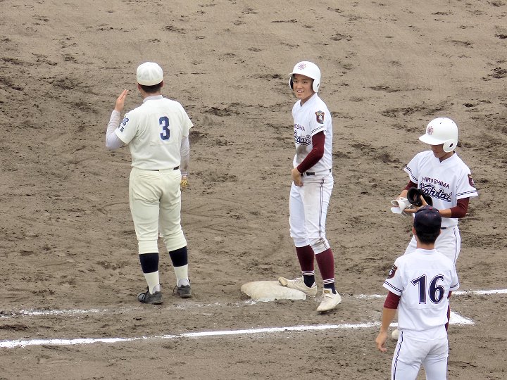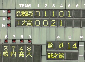 3回裏の攻撃で、また1点追加し、結局、この回の得点は2点で「2×2」と同点で迎えました4回誠之館の攻撃は、残念ながら無得点。その裏の広工大の攻撃では、そつなく1点を追加です。「2×3」と広工大が一歩リード。