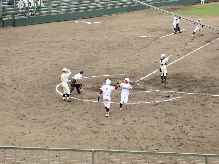 そして5回の表には、好調な誠之館打線で1得点により、またまた「3×3」と追い付きました。両チームとも、力の入ります好ゲーム。いゃぁ、大変面白い展開ですけど、どぅなりますか(^.-)☆