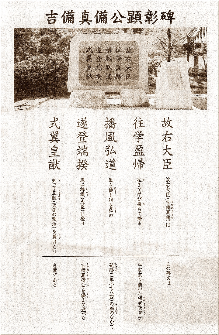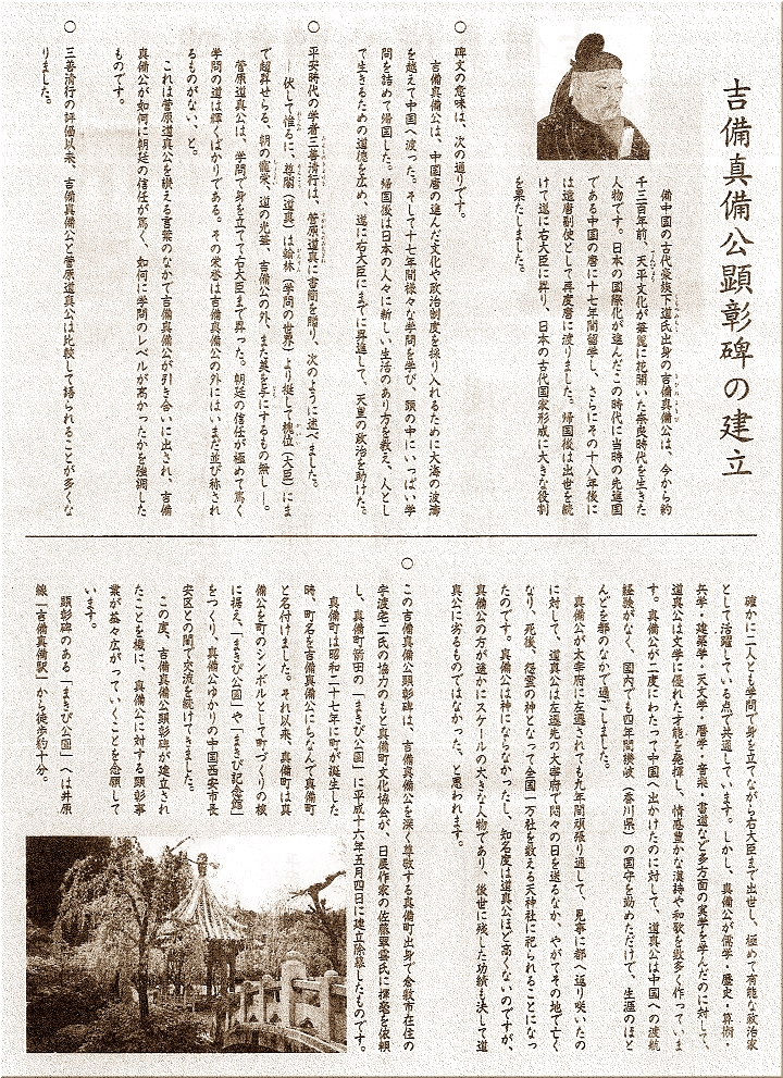 大きな『まきび公園 案内板』も設置されておりまして、これには、「まきび公園」と「吉備真備」の説明がありました(^.-)☆