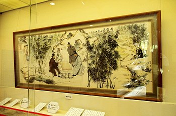 建物は、四隅がぐんと反り上がった屋根を朱塗りの柱が支える構造で、中国情緒を漂わせており、館内には庭園の見えるユニークな休憩所もあります。