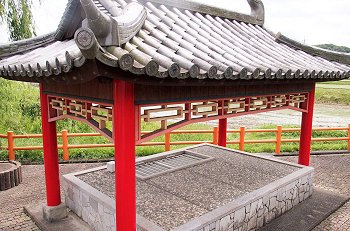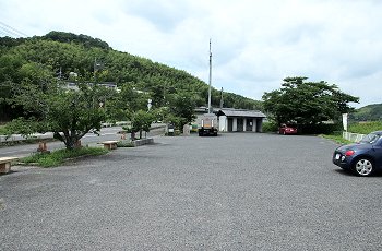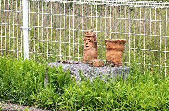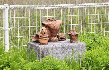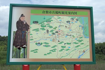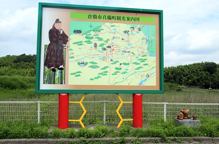 駐車場のフェンス際には「倉敷市真備町観光案内図」が…そして、その傍らには埴輪が(^-^)