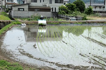 「吉備公産湯の井戸」に隣接の田んぼでは、ノンビリと田植え風景が…マイペースで、ノンビリと楽しそうに田植機を操っておられます様子が、心地よくGONsanには映ってしまいましたネ(^.-)☆