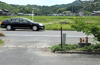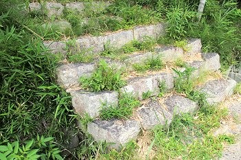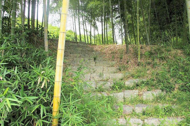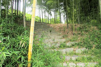 畦道を進んで行きますと、山の麓に石段が…うん、うん、この石段を上がれば到着ですネ。ですが、石段を上がりきりますと、いきなり『まむしに注意』の看板ですから、もぅテンションが下がってしまいます(^-^;