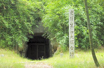 県下三大巨石古墳の一つで、内部にある石室は、巨大ないくつもの石を精密に組み合わせた横穴式の大空間で、入口の羨道とその奥の玄室に分かれています。6世紀後半の築造と考えられており、直径54m、高さ7mの円墳です。