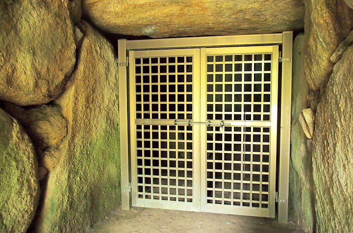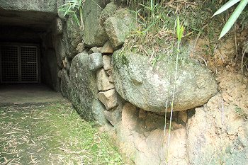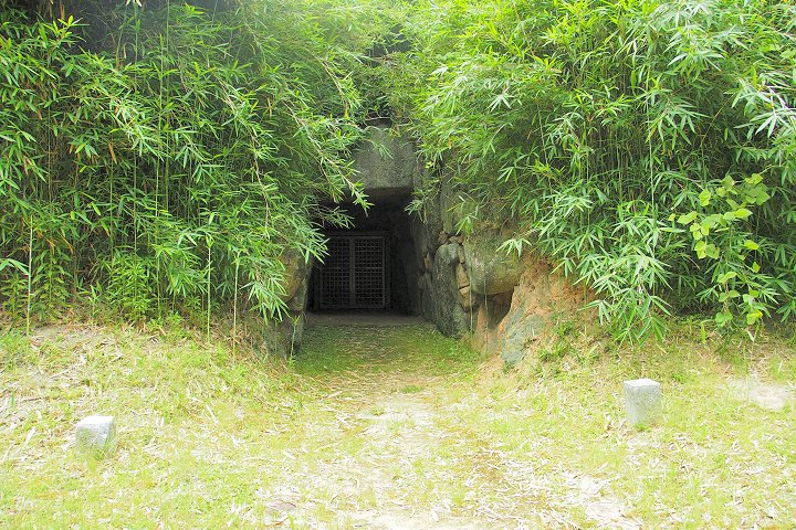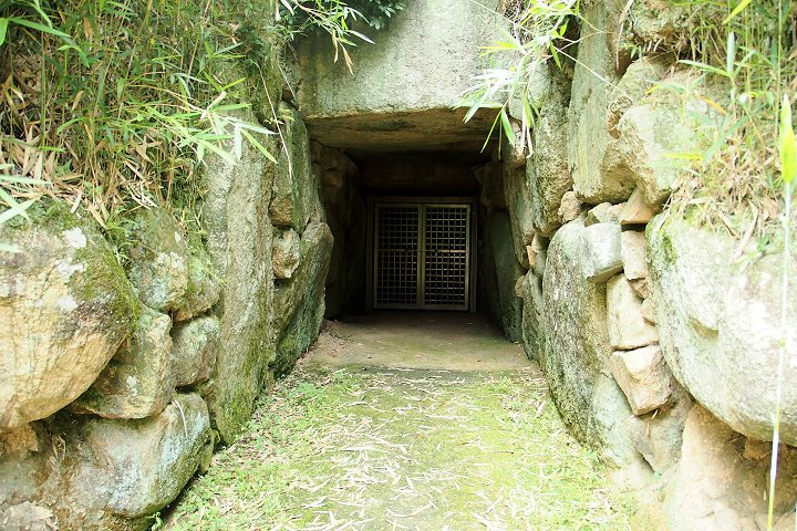 6世紀後半の築造と考えられる県下三大巨石古墳のひとつ。内部にある石室は、巨大ないくつもの石を精密に組み合わせた横穴式の大空間で、入口の羨道とその奥の玄室に分かれています。