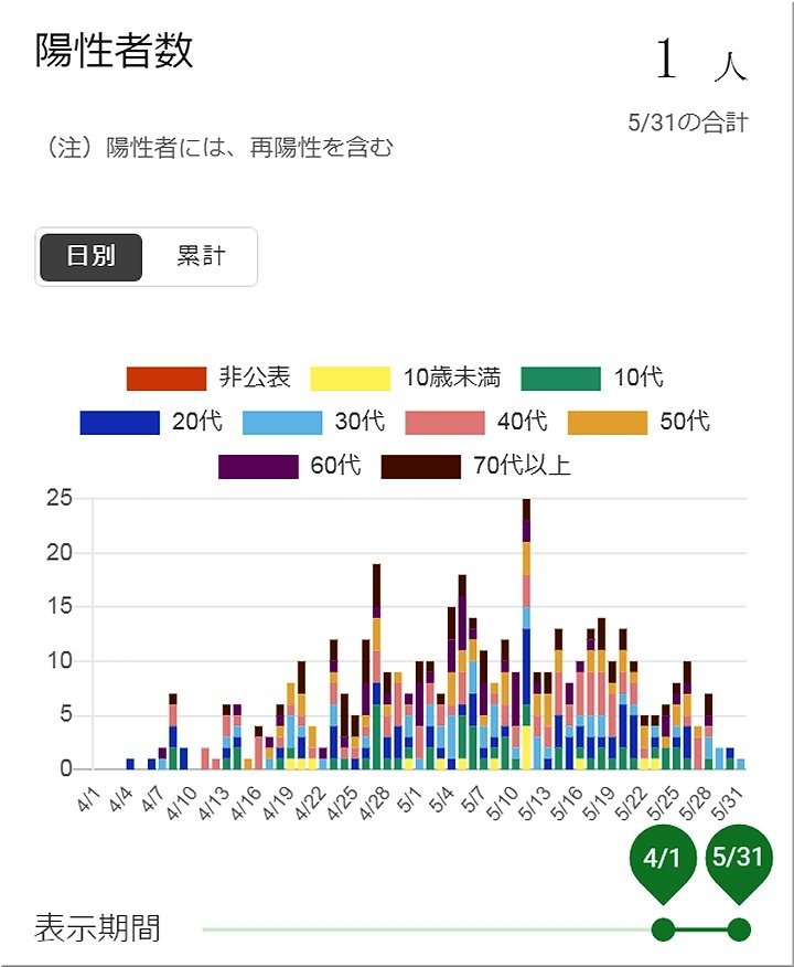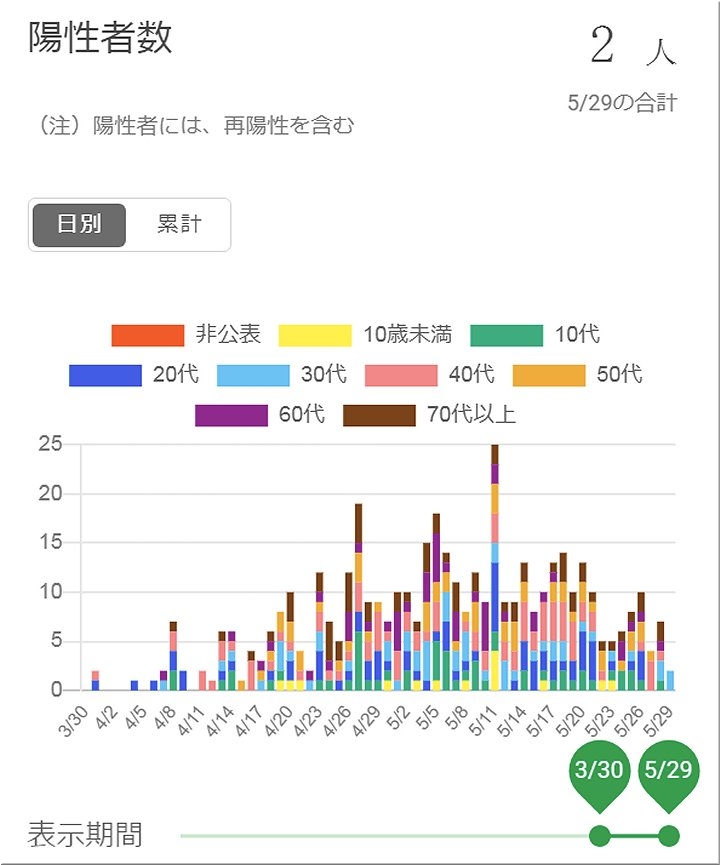 6/2(水)、17件の検査結果が確定し、全て陰性でした。新規感染者の発生なしは4/10(土)以来、53日ぶりとなります。