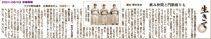 先月からは、元プロ野球選手「広瀬叔功」sanの足跡が綴られております。
