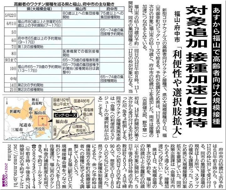 で、肝心のコロナワクチン接種の件ですけど、本日の中国新聞sanの朝刊記事に、今後のスケジュールの掲載が(^.-)☆