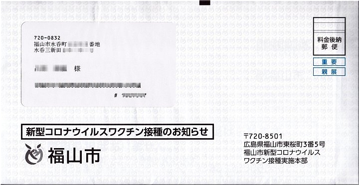 まぁ当初の予定通りなのでしょうけど、我が家にもヤッと「接種券・予診票」が届きました。とは言いましても、GONsanは、福山市旧体育館での接種を予定しておりますから、予約の開始は6/10(木)からのようであります。