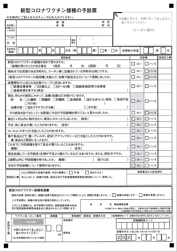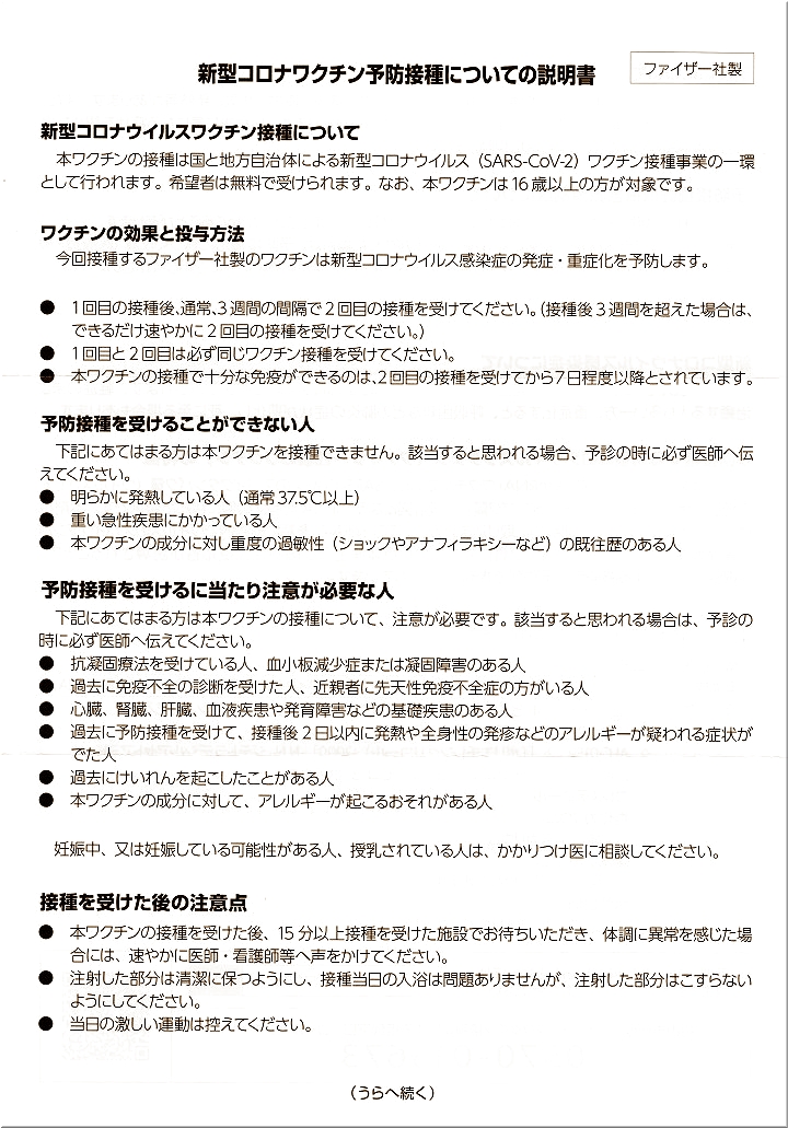本日午前中に新型コロナウイルスワクチンの「接種券」が届きました(^.-)☆