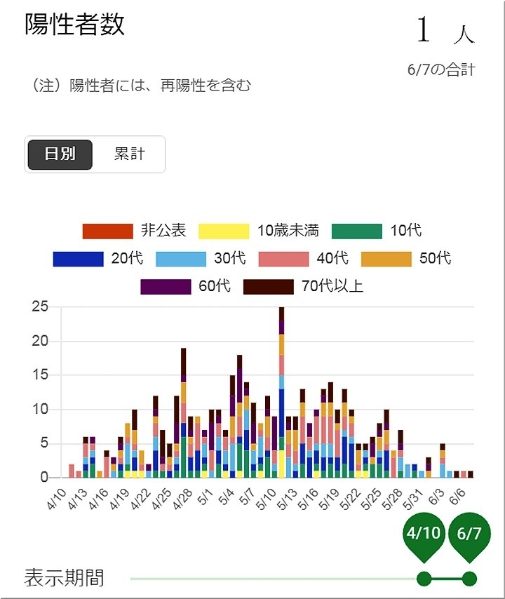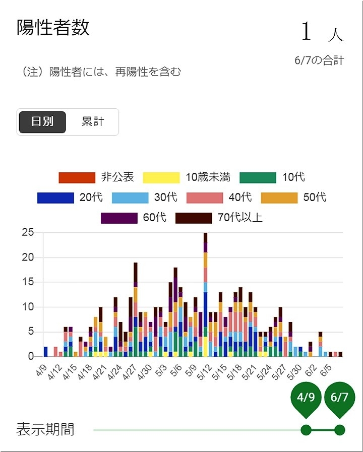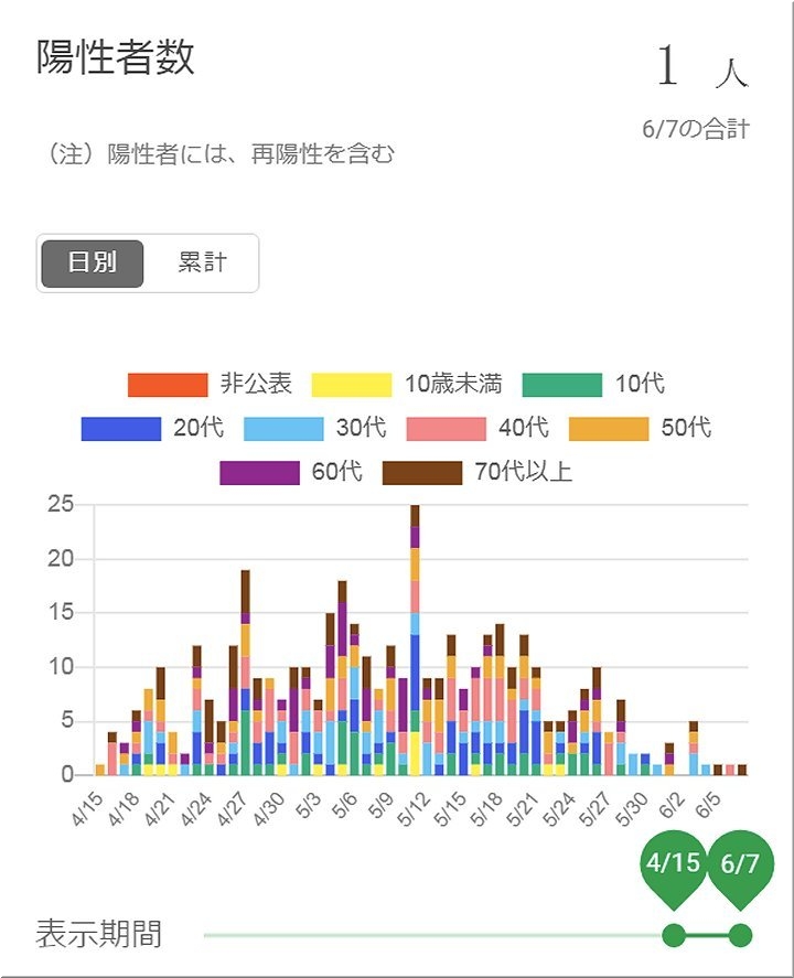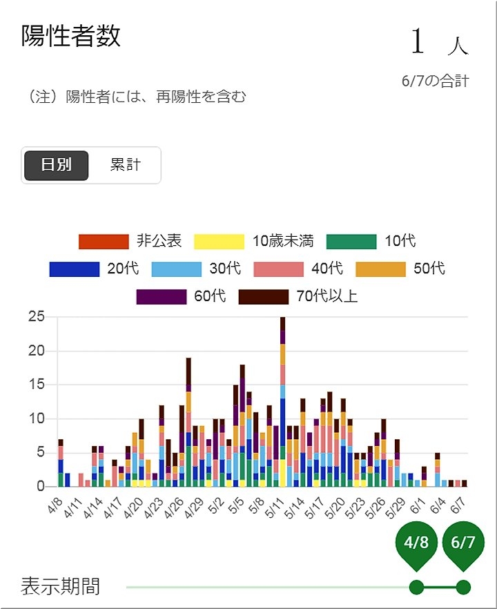 6/6(日)、1051例目となる1人の感染者が確認されました。また、変異株PCR検査の結果、これまでの感染者から変異株が61例確認されました。