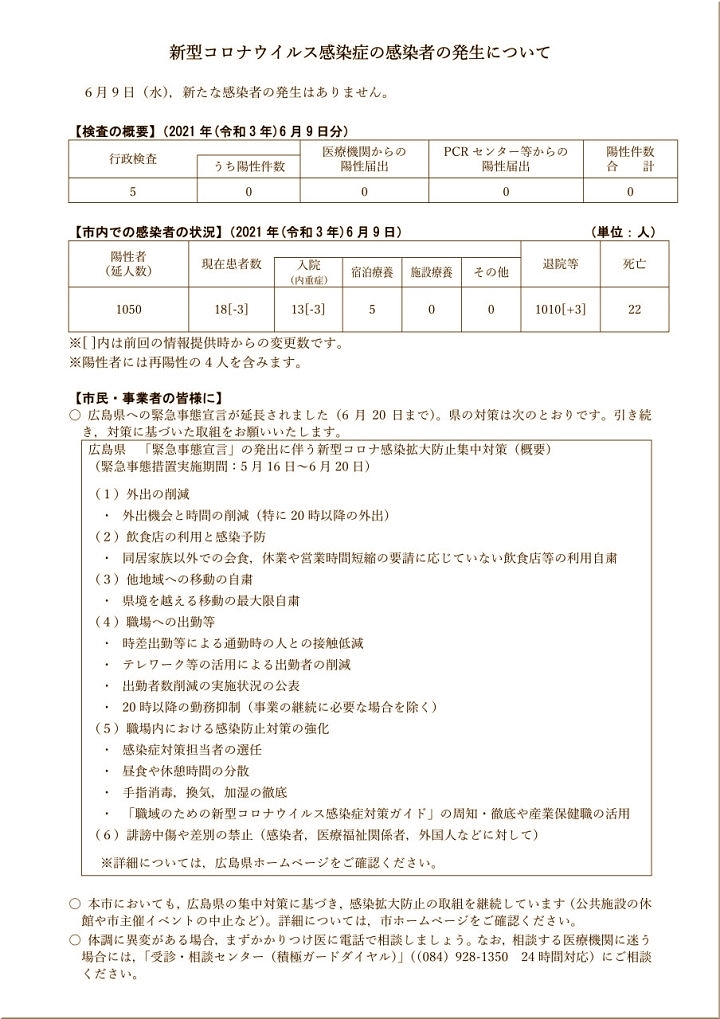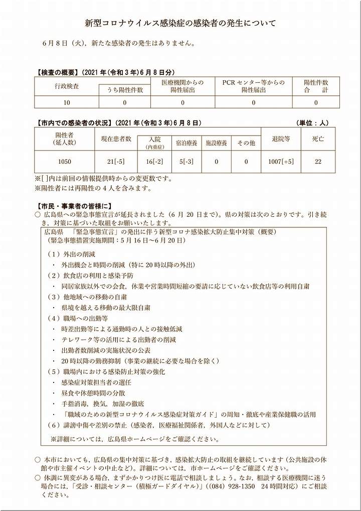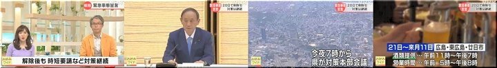 6/17(木)に、NHK NEWSで、6/20に広島県の緊急事態宣言を解除、7/11まで集中対策を延長する旨の報道が…