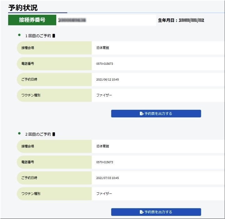 予約集中なのかも…と、危惧しながら指示に従い進んで行きますと、スンナリと、第1回目、そして第2回目と、希望通りの予約が行えました(^_^)v