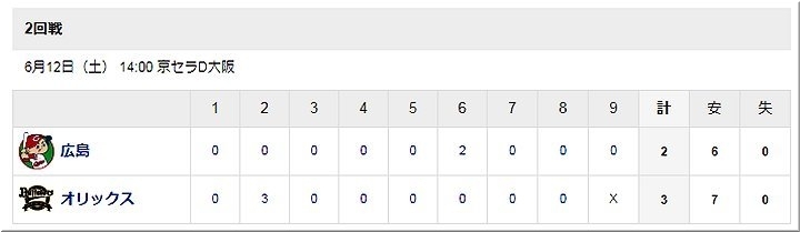 ◆日本生命セ・パ交流戦 オリックス3―2広島(12日・京セラドーム大阪)