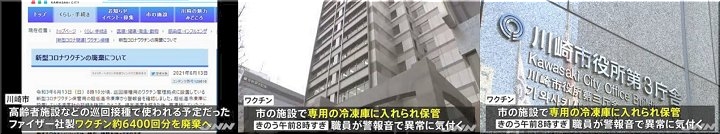 ◆川崎市 ワクチン6,400回分廃棄、冷凍庫に不具合