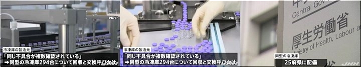 冷凍庫の製造元は「同じ不具合が複数確認されている」として、同型の冷凍庫2944台について回収と交換を呼びかけています。厚生労働省によりますと、同型の冷凍庫は25府県に配備されているということです。