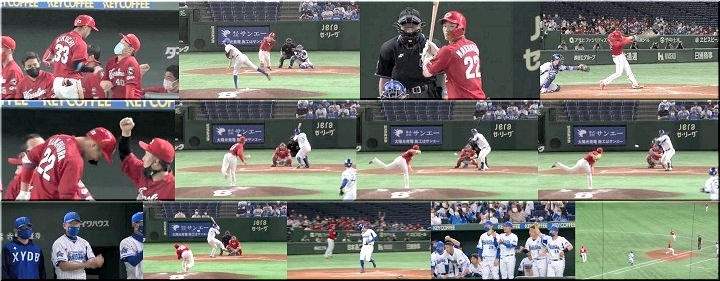 ・1回表 広島 7番 西川 龍馬 二死1,3塁 ランナー1,3塁からセンターへのタイムリーヒット デ0-3広 1,2塁