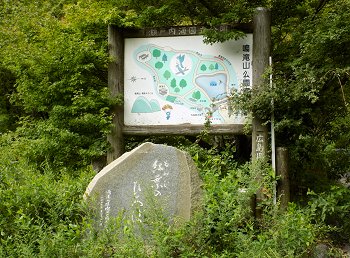 駐車場脇に「鳴滝山公園案内図」と「公園内道しるべ」がありましたので、今からの散策ルートを確認です。