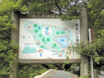 この山岳の標高は402メートルあり、中世の山城、鳴滝城址のそばを通って山頂に登れば、眼下に瀬戸の島々が美しく散らばります。頂上付近にはかつて数多くの堂塔があったといい、今は山伏塚や熊野権現などがひっそりと残っています。