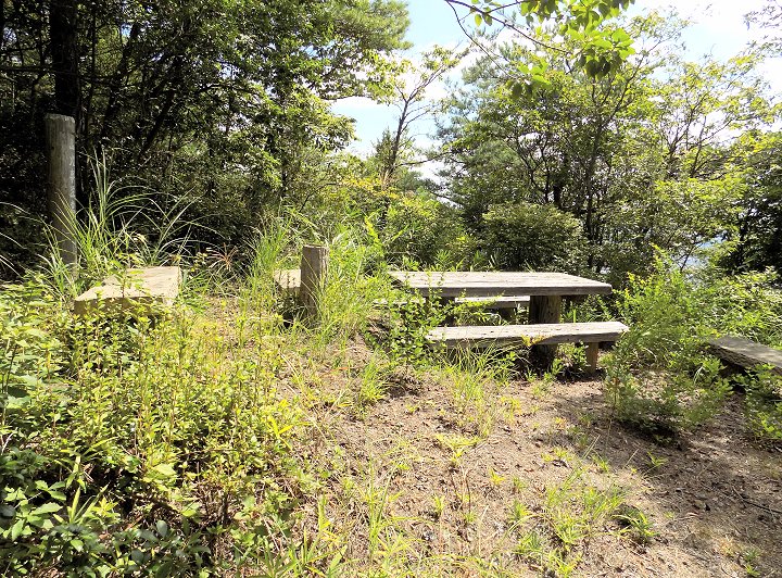 樹木に囲まれてはいますけど、周辺にはベンチやテーブルが…今でこそ成長した樹木に囲まれ視界不良ですけど、設置されました当時は、眼下の美しい瀬戸内がパノラマで楽しめましたのでしょうネ(^_^)v