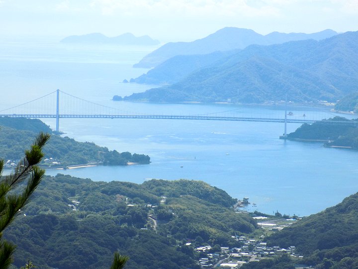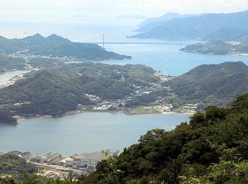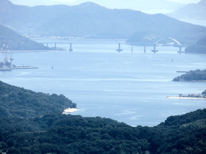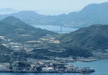 因島の重井方向に眼を向けますと、因島と生口島(瀬戸田)を結びます生口橋の主塔も眼に入ります。その主塔の後方は岩城島なんでしょうネ…とにかく、イィ景観であります(^-^)//"