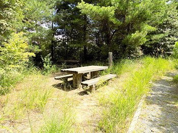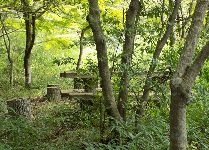 また進んで行きますと、ベンチ・テーブル・イスが設置されてはいますけど、ここも同様。周囲の樹木に囲まれ蛇でも出そう(^-^;