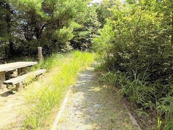 暫く歩いて行きますと、スグにベンチとテーブルが…当初は座って眺望が楽しめましたのでしょうけど、樹木の成長で遮られ、展望は不能です(^-^)