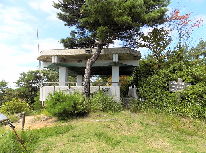 鳴滝山展望台は、コンクリート製のしっかりとした造りです。展望台の横はパラグライダーのフライト広場になっていて、雑草が生い茂ってはいましたけど、良好な見晴らしが確保されていました。
