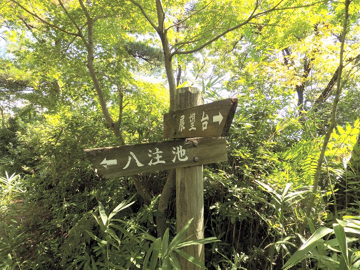 展望台・フライト広場からの眺望も充分楽しめましたので、では、この辺で下山です。八注池から展望台までの登山ルートは、3ルートあるのですけど、下山は、ここから休憩所辺りまで少し引き返し、真ん中のルートで八注池・駐車場へと下ります事に(^-^)//"