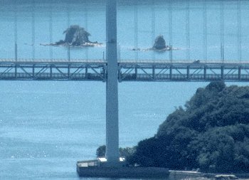 因島側の因島大橋の後方には、小さな二つの島が見えますけど、これは、「八重子島(やえごじま)」ですネ。