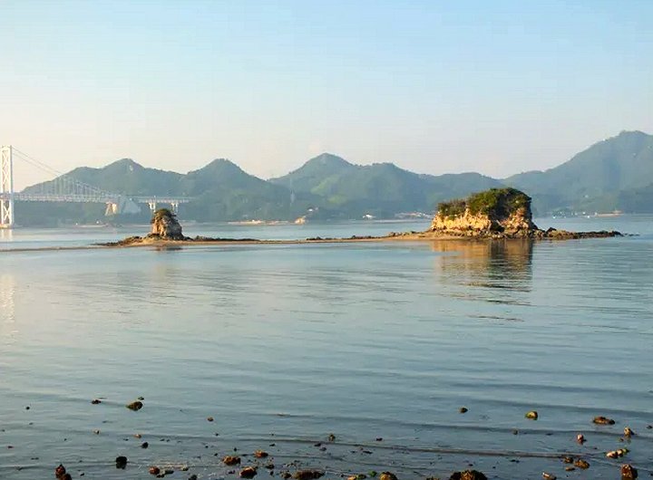 広島県尾道市、大浜海岸沖に浮かぶ無人島。大小2つの島からなり、大潮の干潮時には徒歩で渡ることができる。