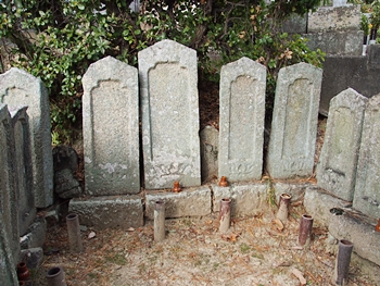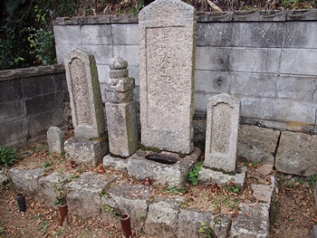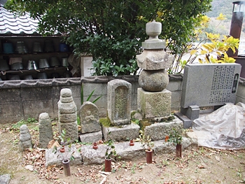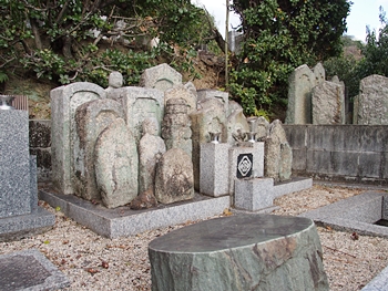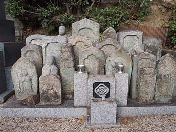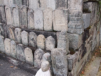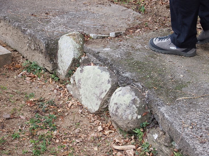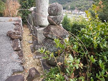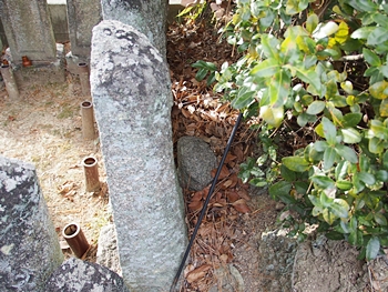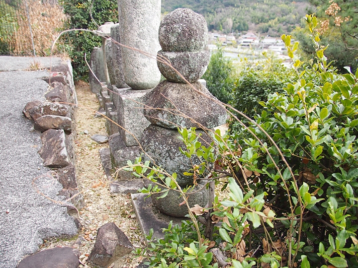 宝大寺の墓地には、仲々立派な五輪塔が…墓地内のコンクリート造りの歩道の基礎には、五輪塔の一部のようにも思えます石が敷かれて…
