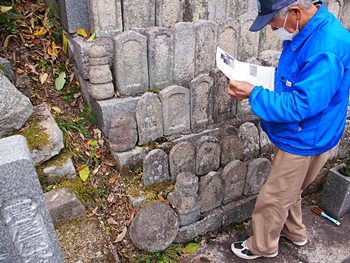 中世の石造物調査も大変ですねぇ〜墓石の間とか裏側も入念に確認しませんと、見落としそうですネ。