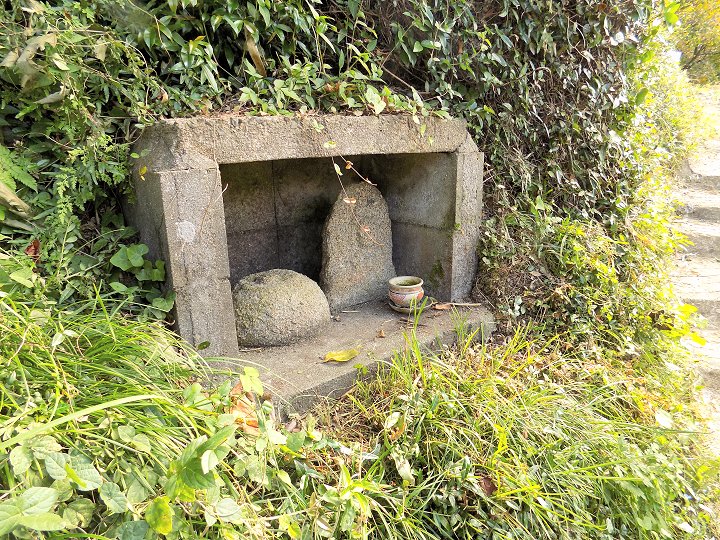 続いて、Gに向かいますけど、F〜G間は距離的にはスグ近くですけど、一旦、来た道を戻りますから、それなりの距離が…ここには、石仏と五輪塔の一部が…
