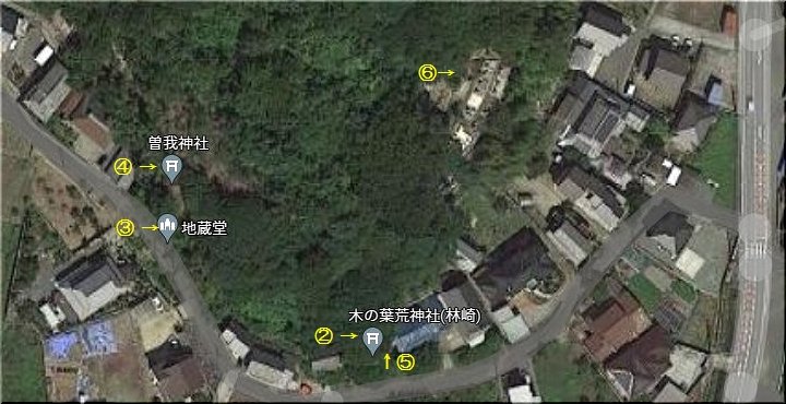 曽我神社から降りて来ますと、また来た道を逆戻りし、木の葉荒神社の石段上り口右脇の祠に立ち寄りです。