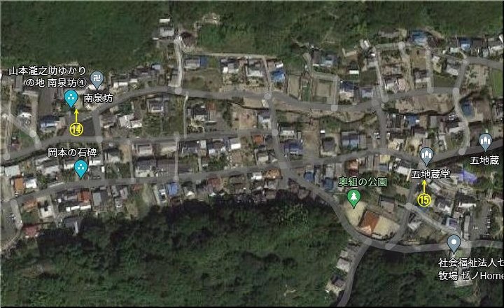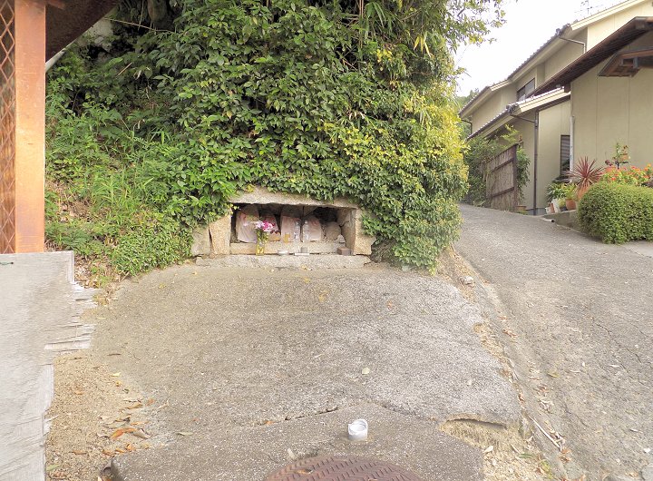 南泉坊境内の五輪塔を確認後は、また少し東方に移動し、近くの市道に車を駐め、歩いて「五地蔵堂」に向かいます。