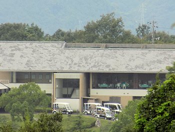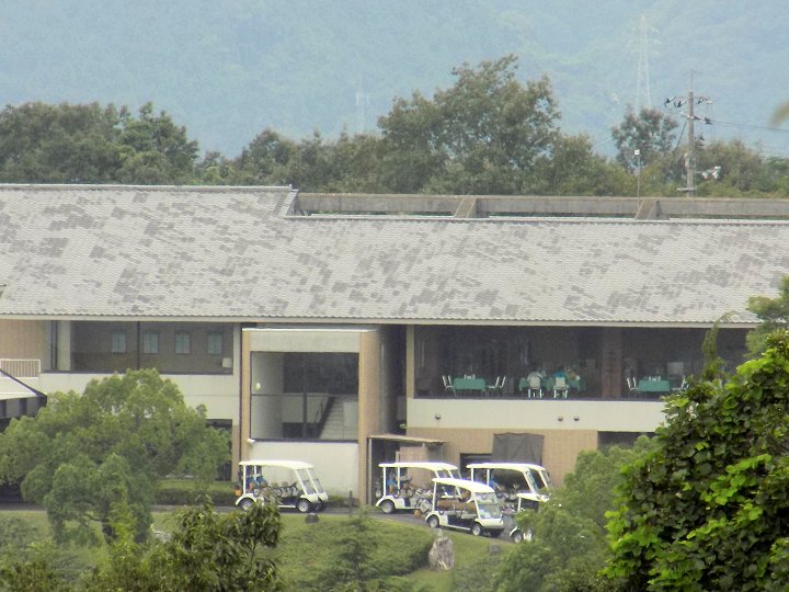 このコミュニティ広場からは、新市クラシックゴルフクラブがよく見えます。コースには人影はありませんけど、クラブハウスの方向に眼を向けますと1組のメンバーがお食事中でありました(^.-)☆